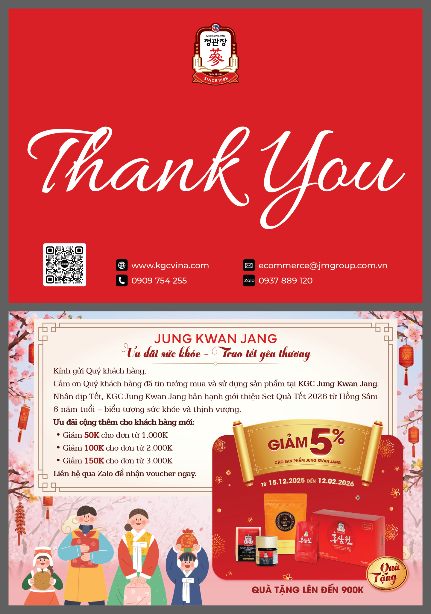 🎁 Giảm ngay 5% cho các sản phẩm Jung Kwan Jang (không áp dụng với các set quà).