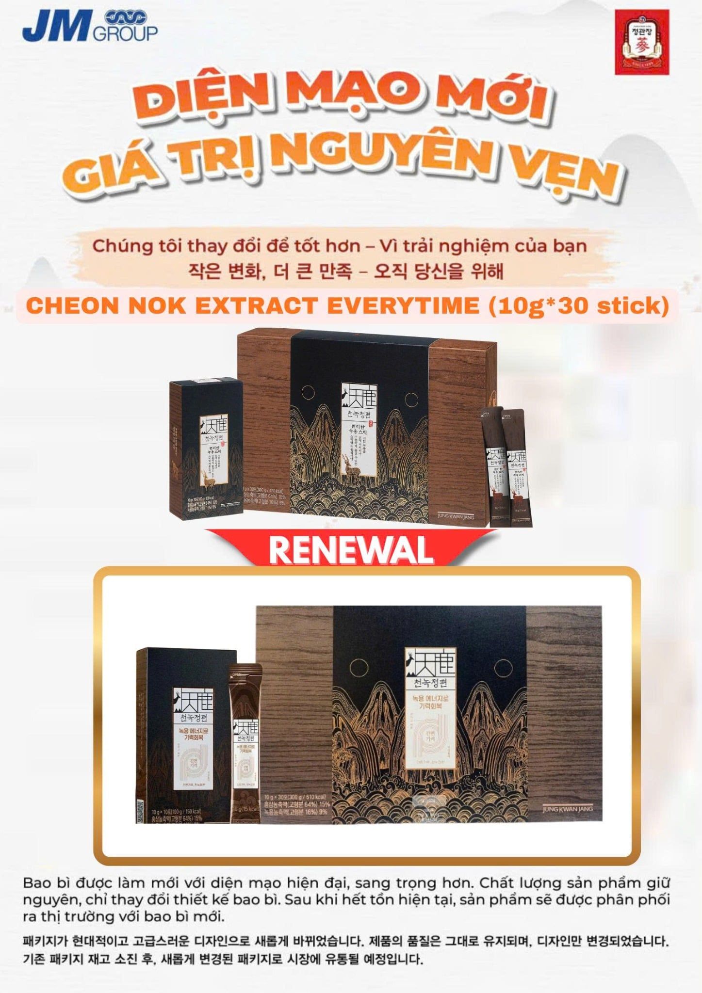 Tinh Chất Hồng Sâm Nhung Hươu Pha Sẵn KGC Jung Kwan Jang Cheon Nok (Hộp 30 gói)