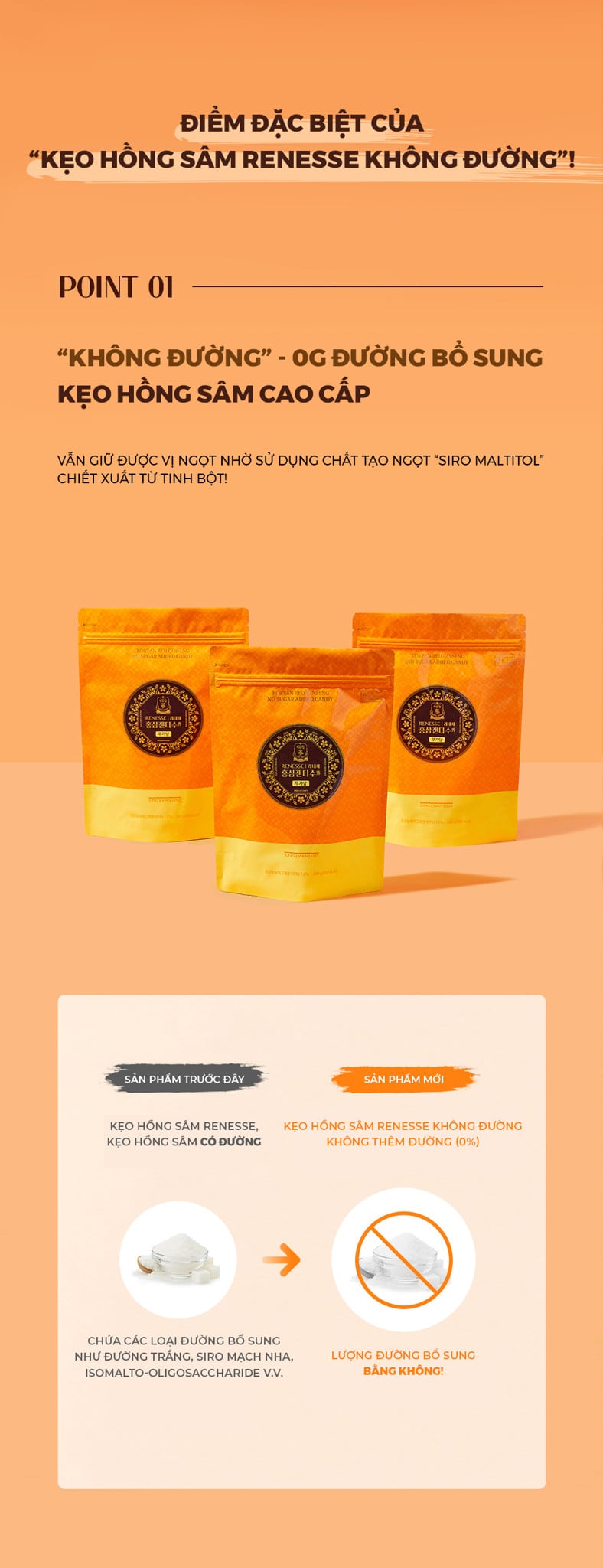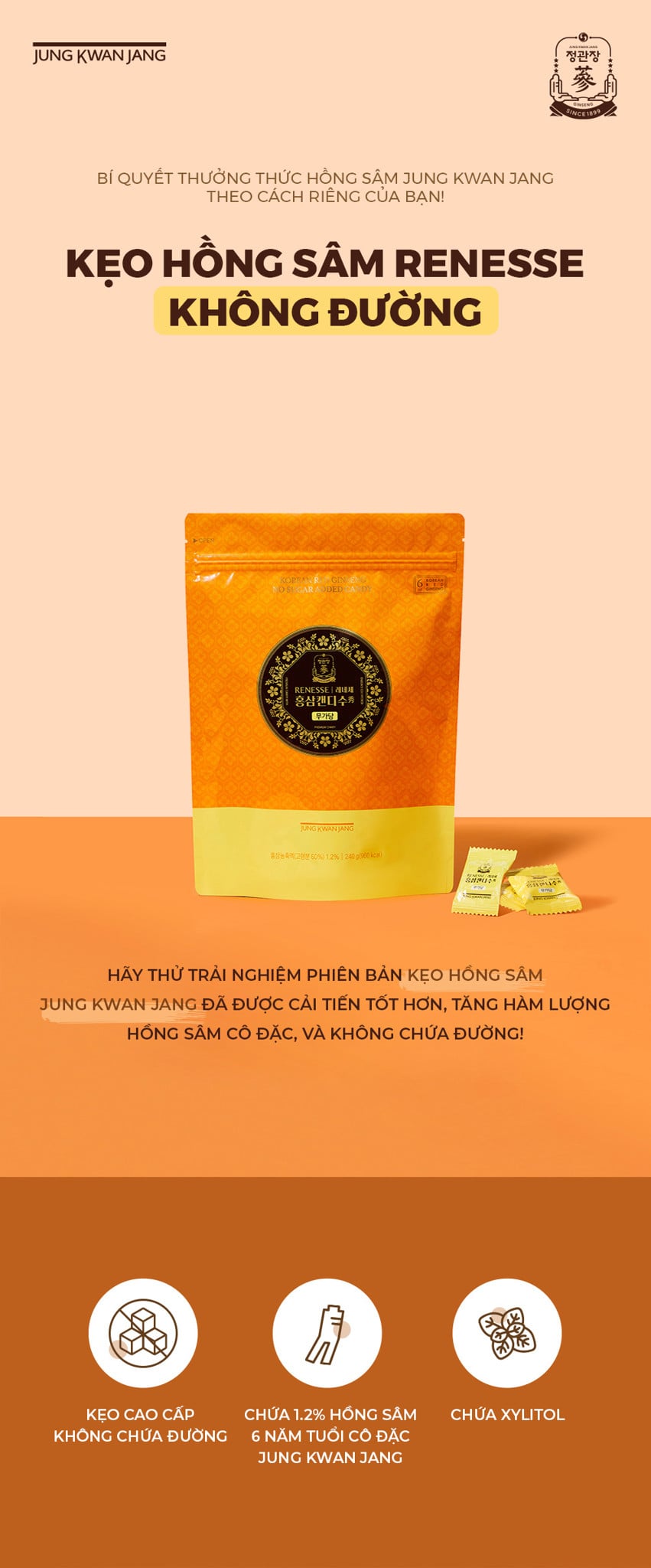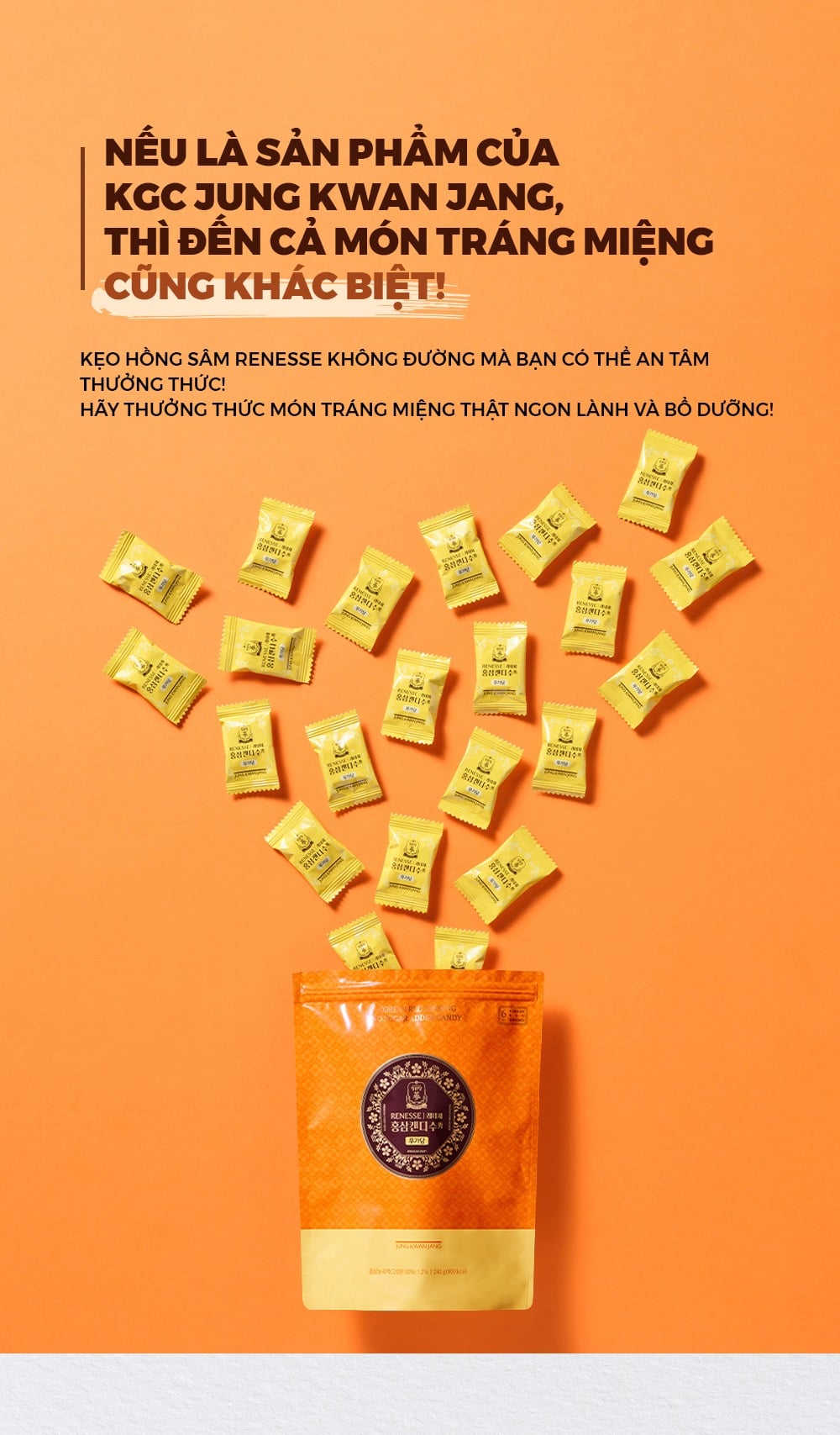 Bạn có thể yên tâm thưởng thức Kẹo Hồng sâm Renesse không đường!