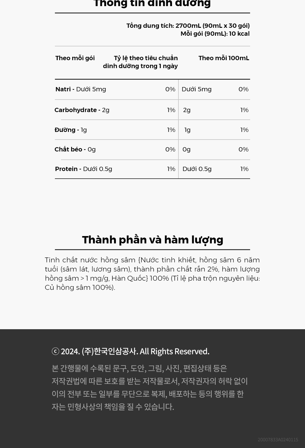 - Tặng 3 gói hồng sâm Lựu đỏ 10ml + 1 Gói Nước Hồng Sâm Pha Sẵn KGC Tonic Original (50 ml * 1 gói) cho đơn từ 3.000K