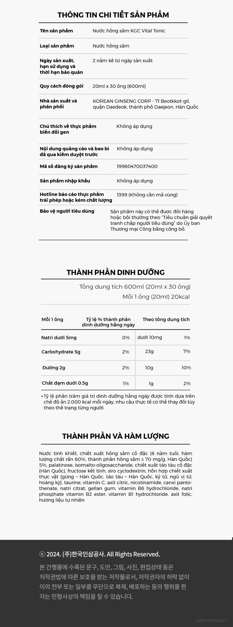 Nước Hồng Sâm KGC Vital Tonic (Hwal Gi Ryeok)